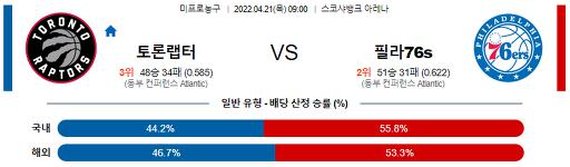 4월 21일 09:00 NBA분석 토론토 : 필라델피아