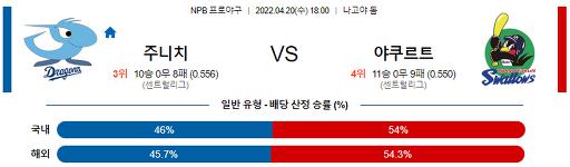 4월 20일 18:00 NPB 주니치 : 야쿠르트