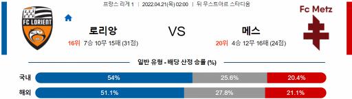 리그앙 4월 21일 02:00 FC 로리앙 : FC 메스