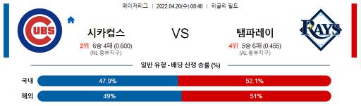 4월 20일 08:40 MLB C.컵스 : 탬파베이