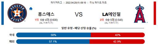 4월 20일 09:10 MLB 휴스턴 : LA에인절스
