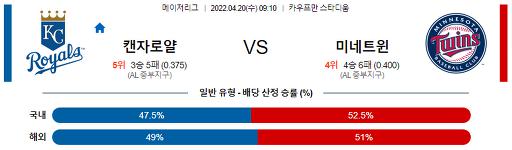 4월 20일 09:10 MLB 캔자스시티 : 미네소타