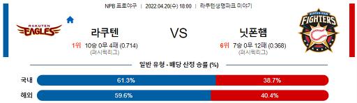 4월 20일 18:00 NPB 라쿠텐 : 니혼햄