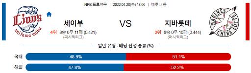 4월 20일 18:00 NPB 세이부 : 치바롯데