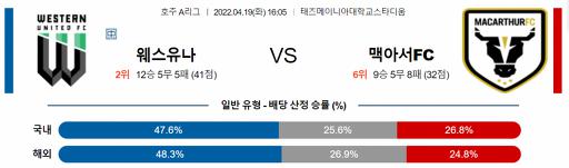 호주 1부 4월 19일 16:05 웨스턴 유나이티드 FC : 맥아서 FC