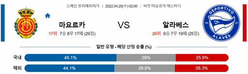 스페인 프리메라리가 4월 20일 02:00 RCD 마요르카 : 알라베스
