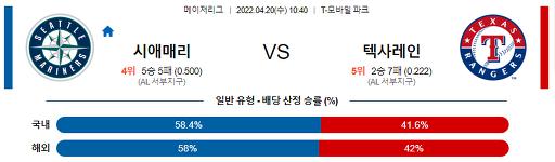 4월 20일 10:40 MLB 시애틀 : 텍사스