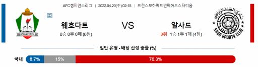 아시아 챔피언스리그 4월 20일 02:15 알웨흐닷 : 알사드 SC