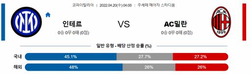 코파 이탈리아 4월 20일 04:00 인터 밀란 : AC 밀란