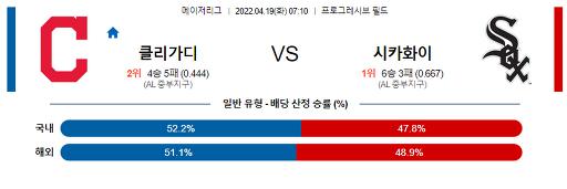 4월 19일 MLB 클리블랜드 : C.화이트삭스