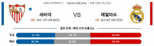 스페인 프리메라리가 4월 18일 04:00 세비야 FC : 레알 마드리드 CF