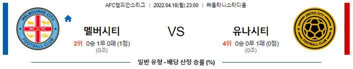 열람중 【AFC CL】 4월 18일 멜버른 시티 vs 유나이티드 시티 2022.04.18 466