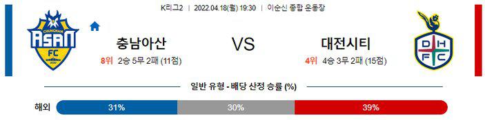 【K리그2】 4월 18일 충남 아산 vs 대전 하나 시티즌
