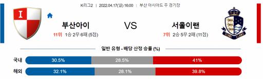 K리그2 4월 17일 16:00 부산 아이파크 : 서울 이랜드 FC