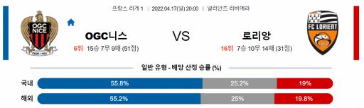 프랑스 리그앙 4월 17일 20:00 OGC 니스 : FC 로리앙