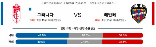 스페인 프리메라리가 4월 17일 21:00 그라나다 CF : 레반테 UD
