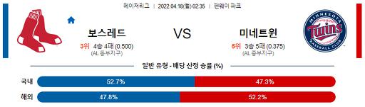 4월 18일 02:35 MLB 보스턴 : 미네소타