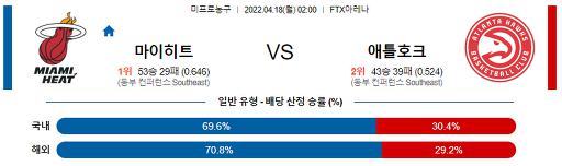 4월 18일 02:00 NBA분석 마이애미 : 애틀랜타