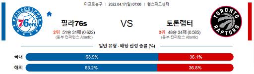 4월 17일 07:00 NBA분석 필라델피아 : 토론토