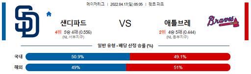 4월 17일 05:05 샌디에이고 : 애틀랜타