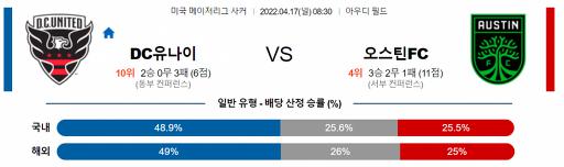 미국 MLS 4월 17일 08:30 D.C. 유나이티드 : 오스틴 FC