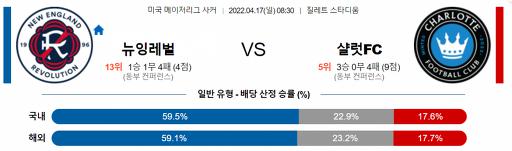미국 MLS 4월 17일 08:30 뉴잉글랜드 레볼루션 : 샬럿 FC