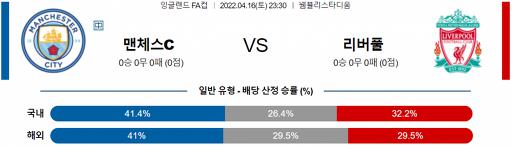 잉글랜드 FA컵 4월 16일 23:30 맨체스터 시티 : 리버풀 FC