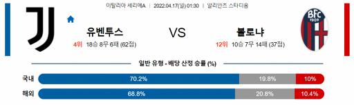 이탈리아 세리에A 4월 17일 01:30 유벤투스 FC : 볼로냐 FC 1909
