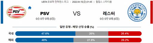 UEFA 유로파리그 4월 15일 01:45 PSV 에인트호번 : 레스터 시티 FC