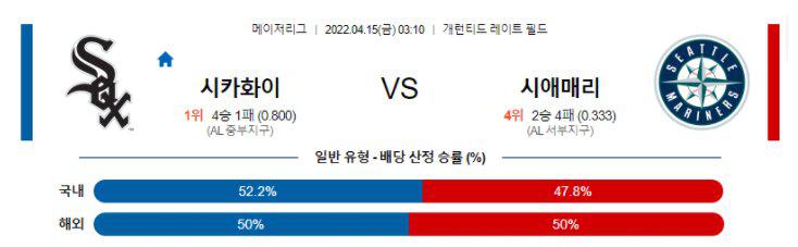 【MLB】 4월15일 화이트삭스 vs 시애틀