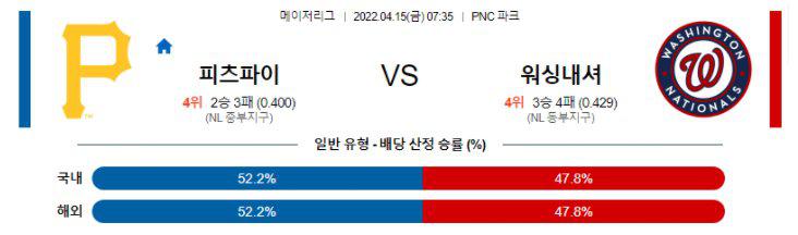【MLB】 4월15일 피츠버그 vs 워싱턴