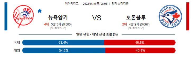 【MLB】 4월15일 뉴욕양키스 vs 토론토