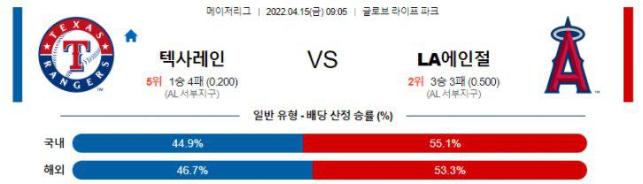 【MLB】 4월15일 텍사스 vs LA에인절스