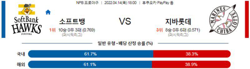 【NPB】 4월 14일 소프트뱅크 vs 치바롯데