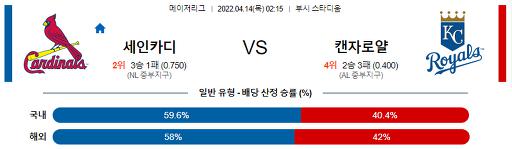 4월 14일 02:15 MLB 세인트루이스 : 캔자스시티