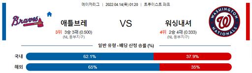 4월 14일 01:20 MLB 애틀랜타 : 워싱턴