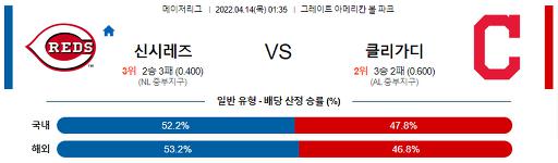 4월 14일 01:35 MLB 신시내티 : 클리블랜드