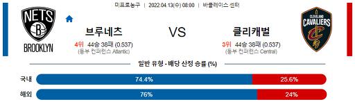 4월 13일 08:00 NBA분석 브루클린 : 클리블랜드