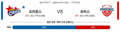 4월 13일 19:00 고양 오리온 : 울산모비스