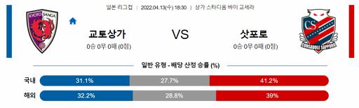 일본 리그컵 4월 13일 18:30 교토 상가 FC : 콘사도레 삿포로