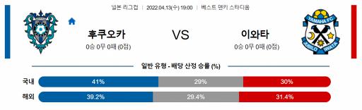 일본 리그컵 4월 13일 19:00 아비스파 후쿠오카 : 주빌로 이와타