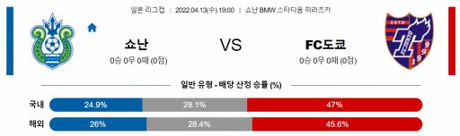일본 리그컵 4월 13일 19:00 쇼난 벨마레 : FC 도쿄
