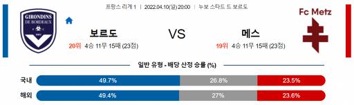 프랑스 리그앙 4월 10일 20:00 FC 지롱댕 드 보르도 : FC 메스