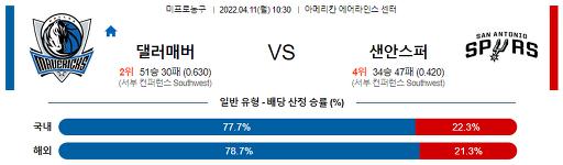 4월 11일 10:30 NBA분석 댈러스 : 샌안토니오