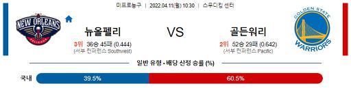 4월 11일 10:30 NBA분석 뉴올리언스 : 골든스테이트