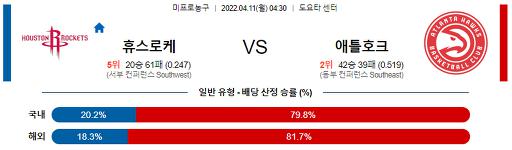 4월 11일 04:30 NBA분석 휴스턴 : 애틀랜타
