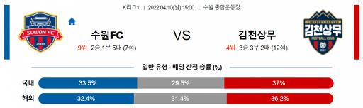 K리그1 4월 10일 15:00 수원 FC : 김천 상무 FC