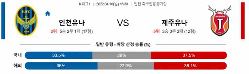 K리그1 4월 10일 16:30 인천 유나이티드 FC : 제주 유나이티드 FC