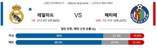 스페인 프리메라리가 4월 10일 04:00 레알 마드리드 CF : 헤타페 CF