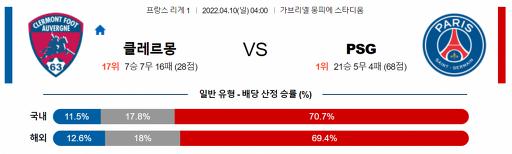 프랑스 리그앙 4월 10일 04:00 클레르몽 푸트 : 파리 생제르맹 FC